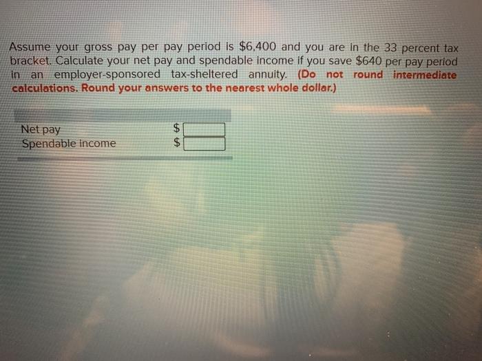 Solved Assume Your Gross Pay Per Pay Period Is 6 400 And Chegg Com